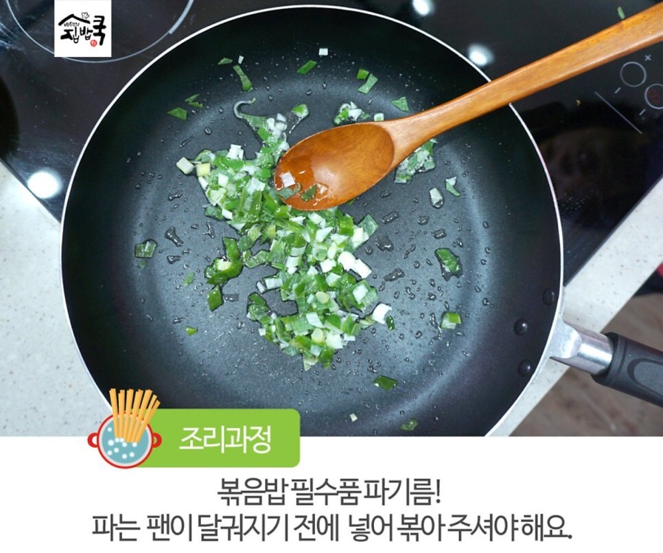 2. 볶음밥 필수품! 파 기름!!파는 팬이 달궈지기 전에 넣어 볶아 주셔야 해요.