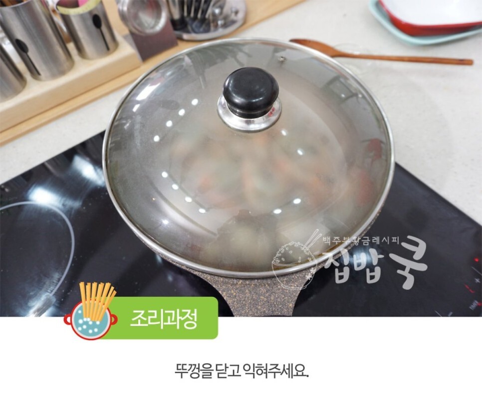 4. 화이트 와인을 부으면 풍미가 살겠지만 (저에겐 사치랍니다..ㅠㅠ) 없으시면 물 반 컵으로 대체하셔도 괜찮습니다.