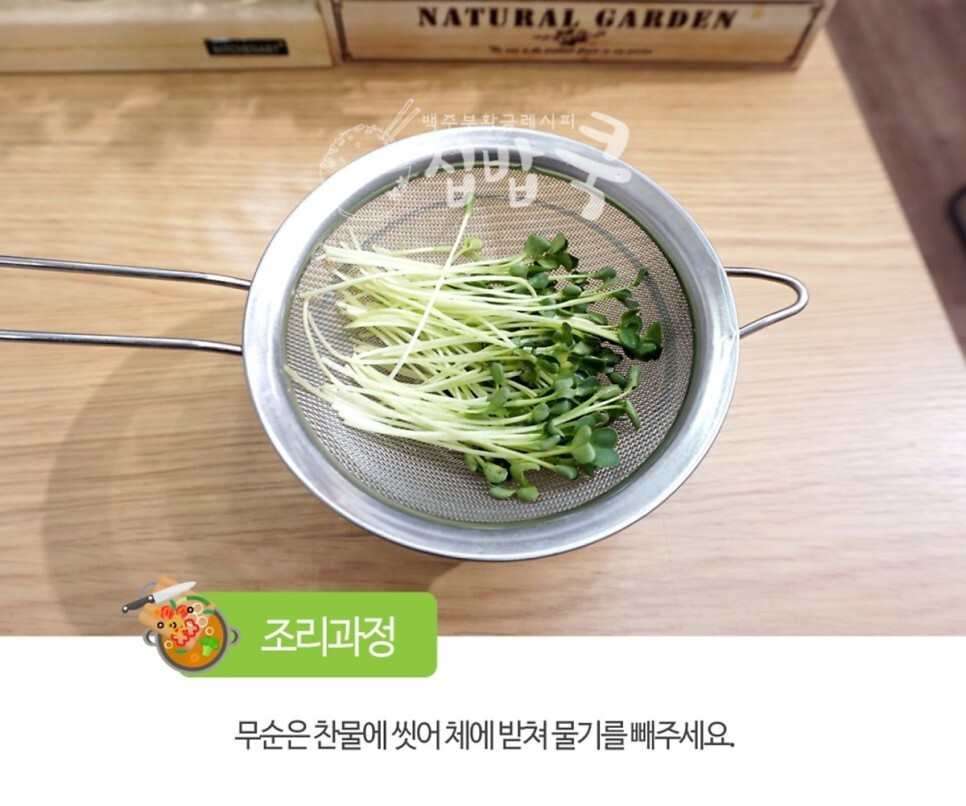 2. 무순은 찬물에 씻어 체에 밭쳐 물기를 빼주세요