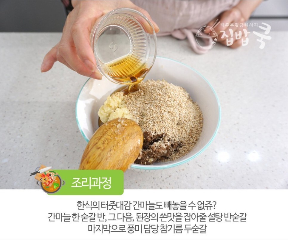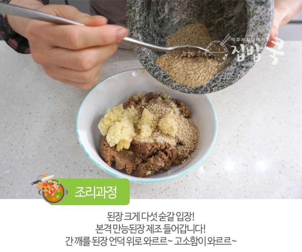 1. 된장의 짠맛을 잡을 "깨!"다섯 숟갈을 갈아주세요~!