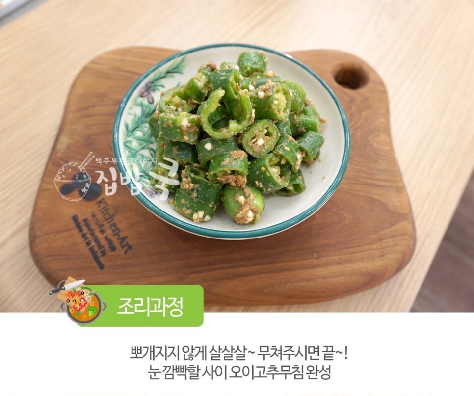 2. 살살 부서지지 않게 무쳐주시면 오이고추 무침 끝~! (간을 살짝 보면서 된장 양을 조절해 주세요)