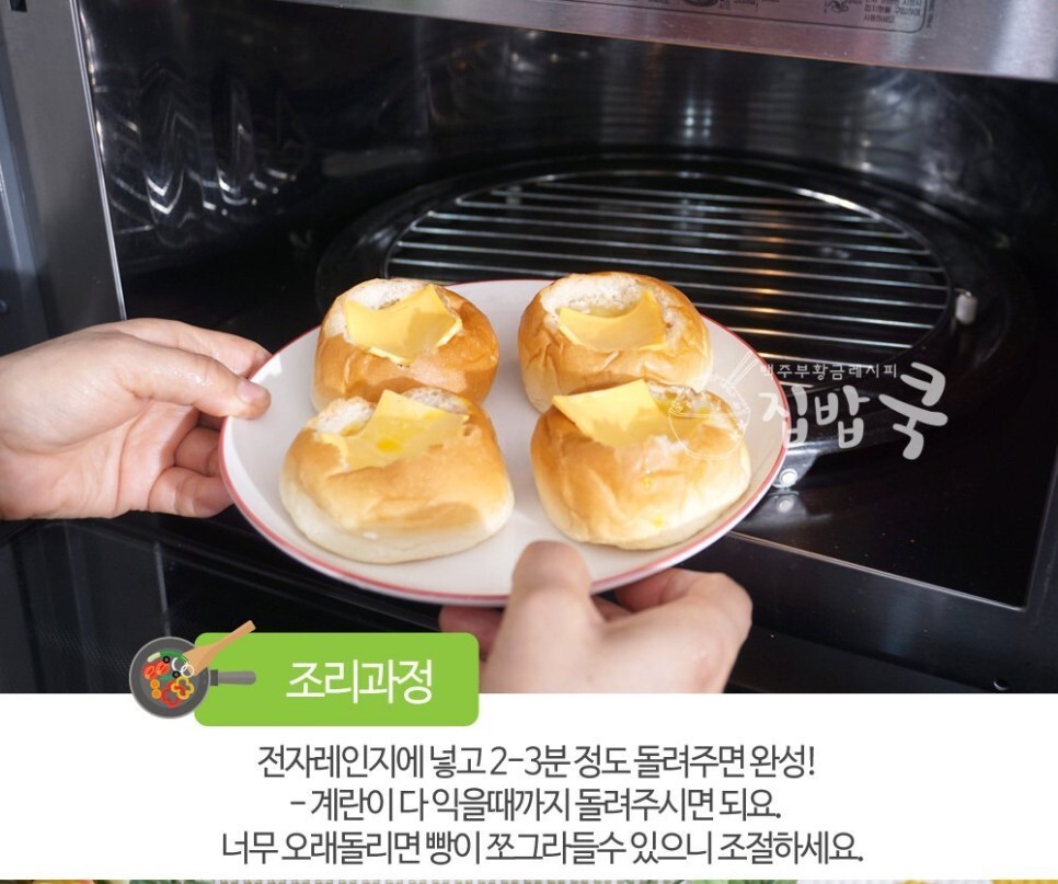 7. 전자레인지에 넣고 2~3분 정도 돌려주시면 에그 모닝빵 완성~!!