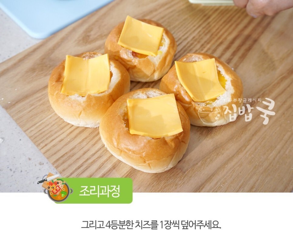6. 4등분 한 치즈를 1장씩 덮어주세요.