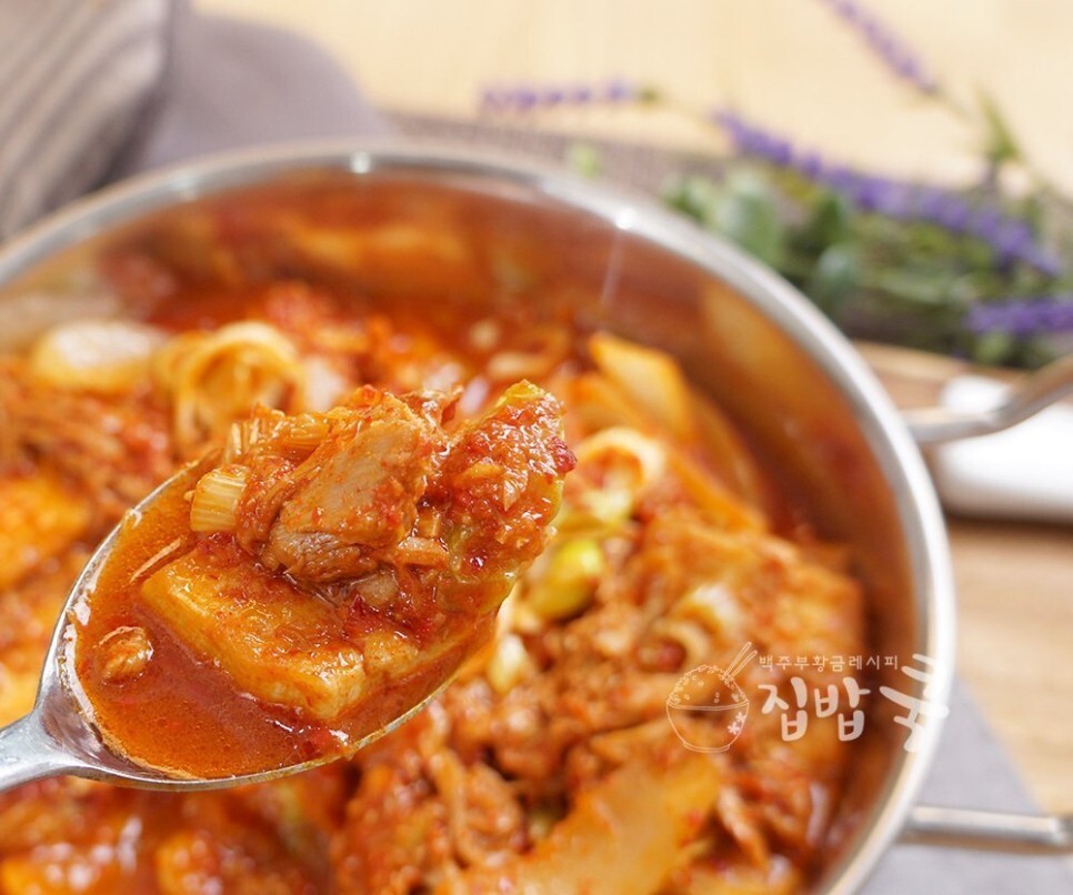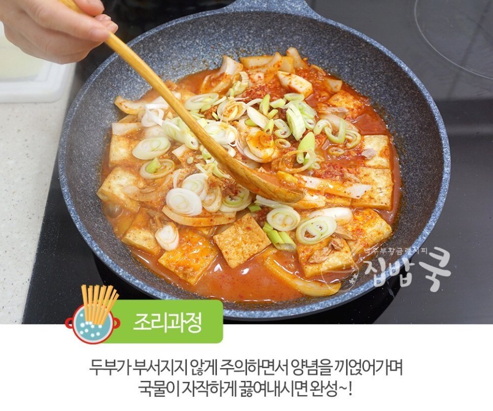 8. 두부가 부서지지 않게 주의하면서 양념을 끼얹어가며 국물이 자작하게 끓여내시면 참치 두루치기 완성~!