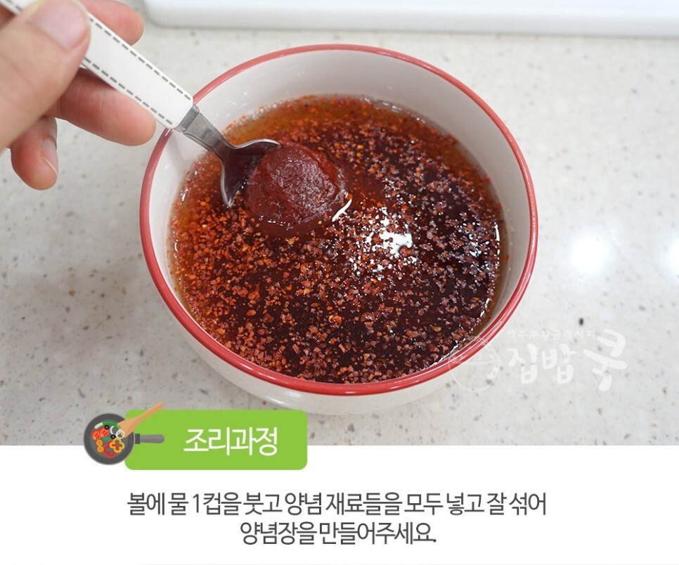 4. 볼에 물 1컵을 붓고 양념 재료들을 모두 넣고 잘 섞어 양념장을 만들어주세요.