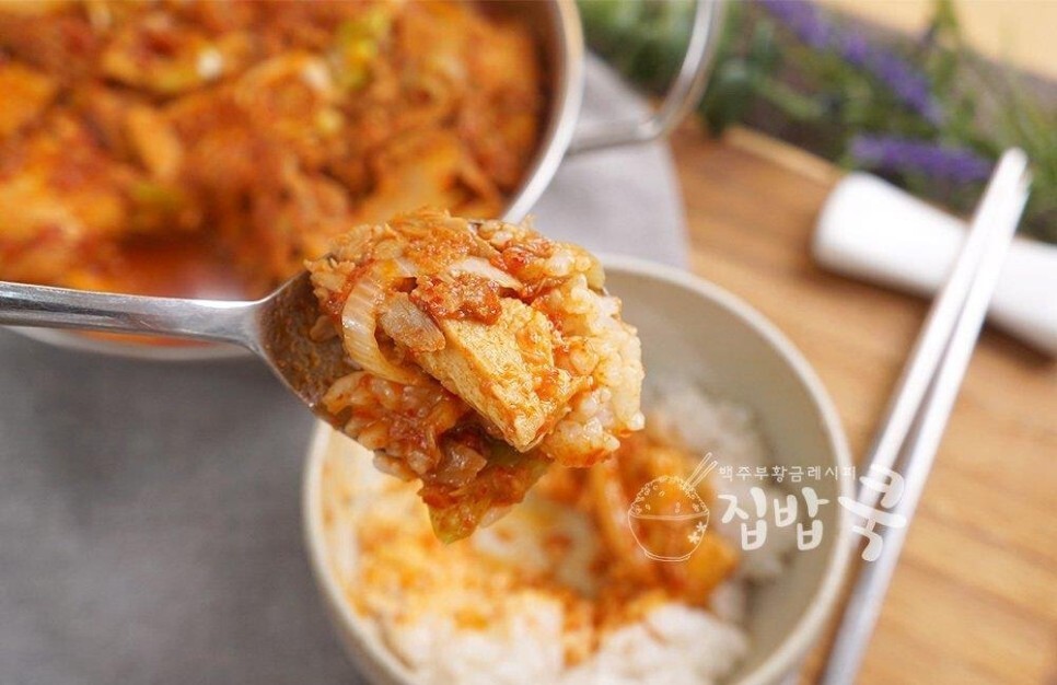갓 지은 따뜻한 하얀 쌀밥에 김이 모락모락 매콤하고 칼칼한 참치 두루치기 한술 떠서 밥 위에 슥슥 비벼 드시면 으악! 너무 맛있어요 집 나간 입맛도 돌아오는 맛이네요 그냥 참치캔만 먹음 맛도 없고 뭔가 참치캔은 처리하고 싶을 때 조리법도 쉽고 재료도 간단하고 맛은 일품이고 오늘 저녁 꼭 드셔 보세요. 다음에도 손쉽고 맛있는 레시피 들고 올게요.