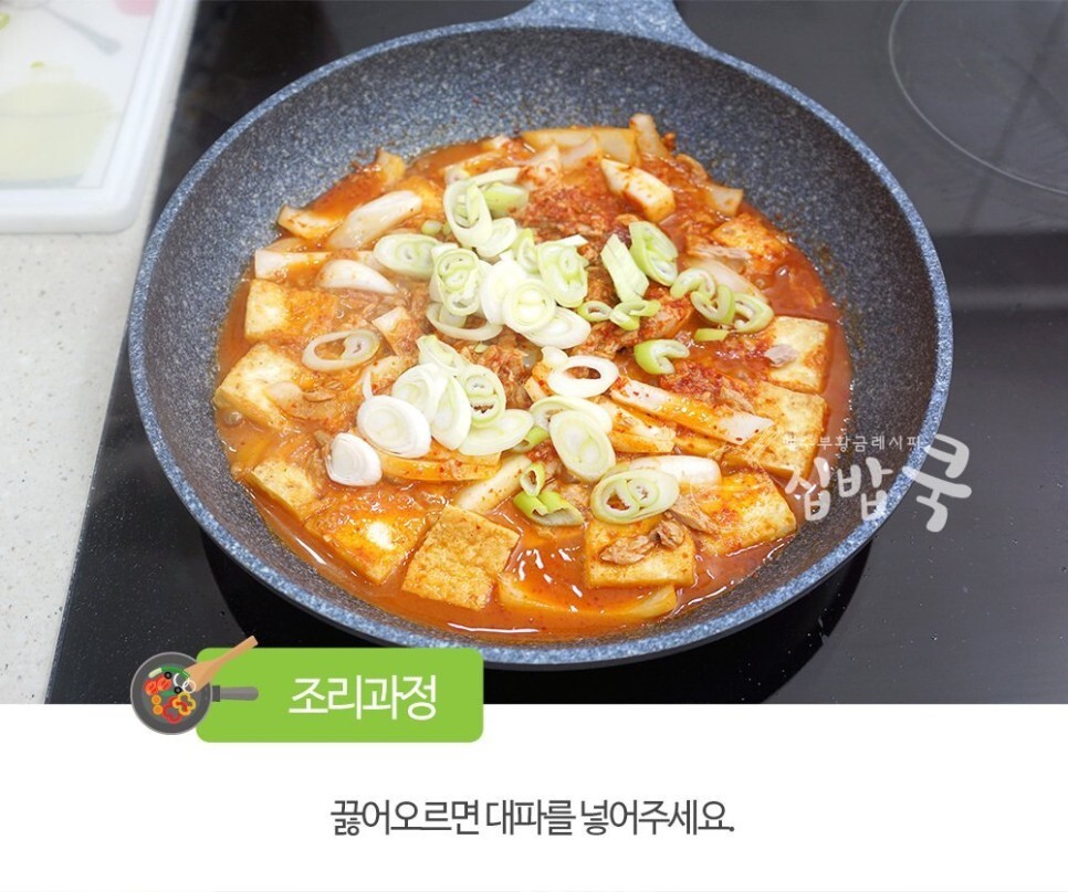 7. 끓어오르면 마무리로 대파를 넣어주세요.