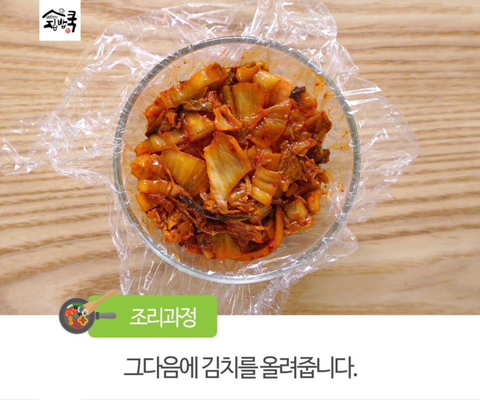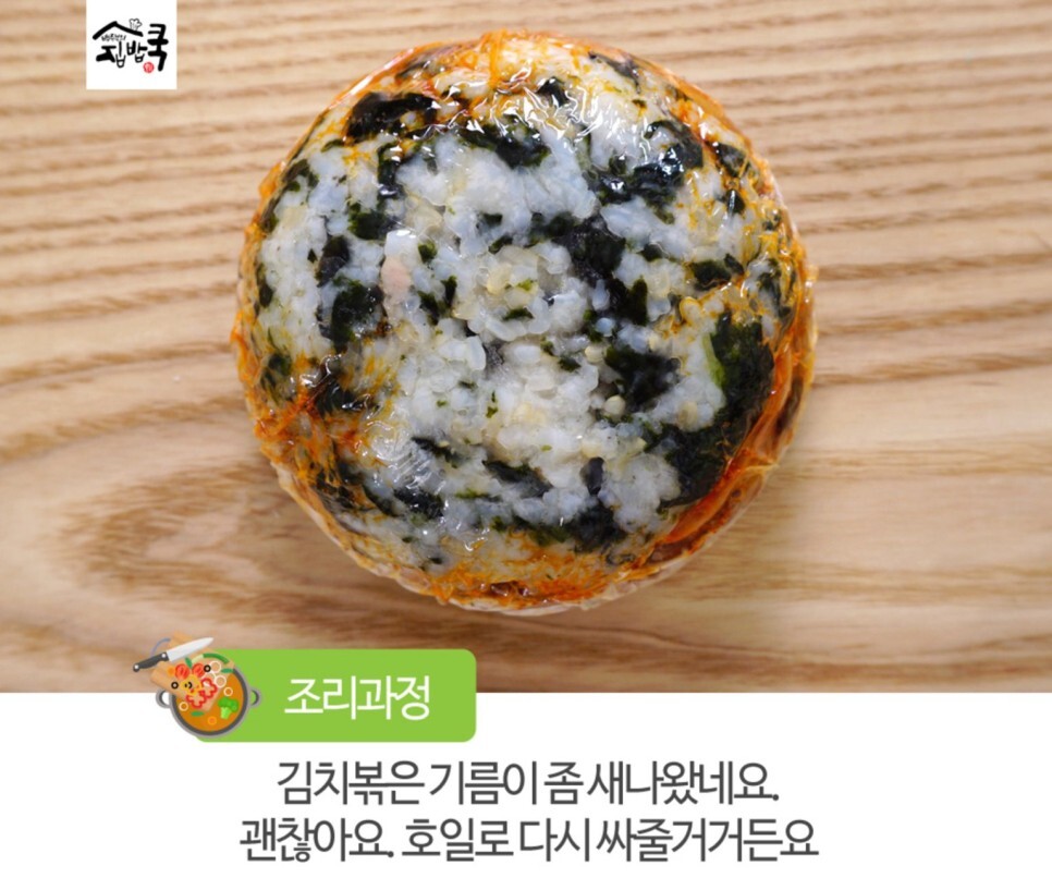 1. 먼저 김치를 잘게 자른 다음 프라이팬에 들기름을 두르고 볶아주세요 혹시 김치가 많이 시다면 설탕을 조금 넣어주시면 신맛이 중화가 가능합니다.