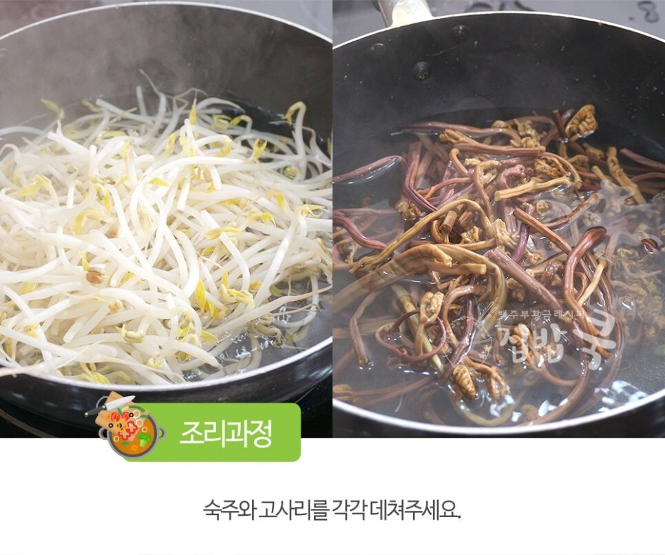 2. 숙주와 고사리를 각각 데쳐주세요.