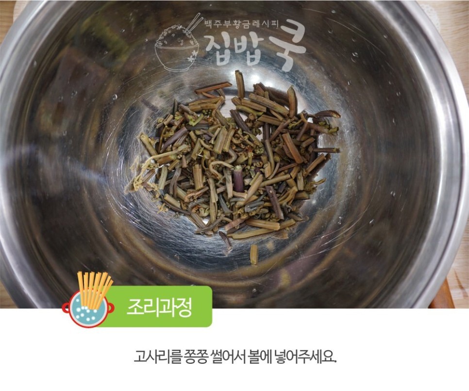 2. 고사리를 잘게 썰어서 볼에 넣어주세요.