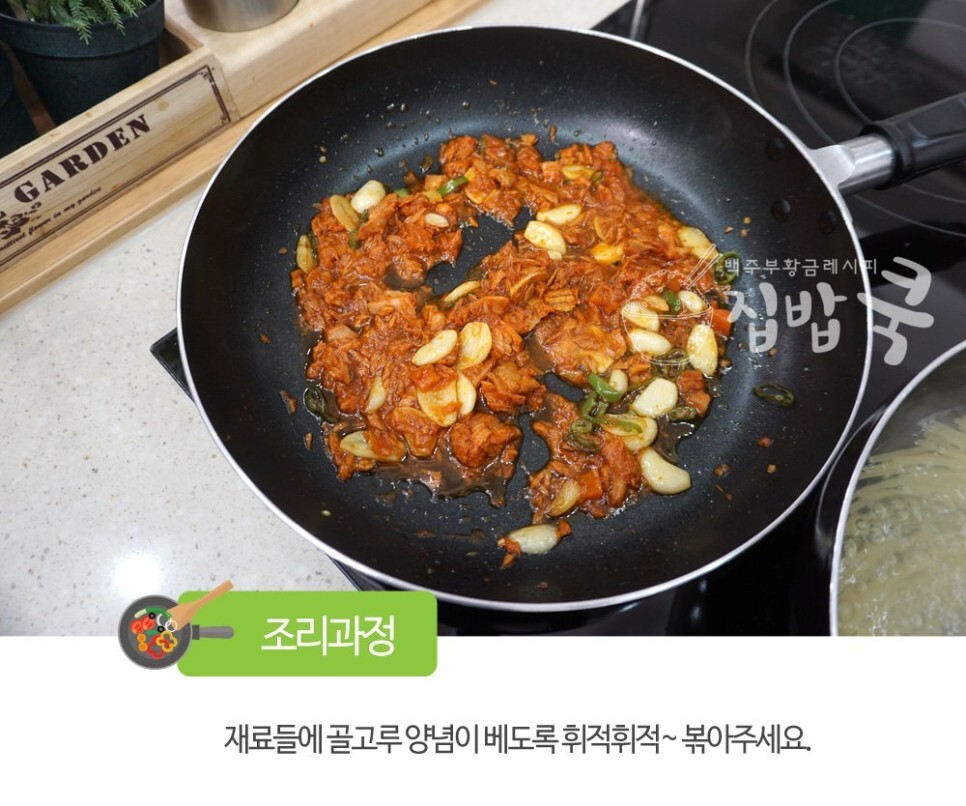 알싸한 마늘과 칼칼한 청양고추 볶아내서 매콤한 풍미를 더했는데요 여기에 양파까지 추가해 주시면 더 좋을 것 같아요