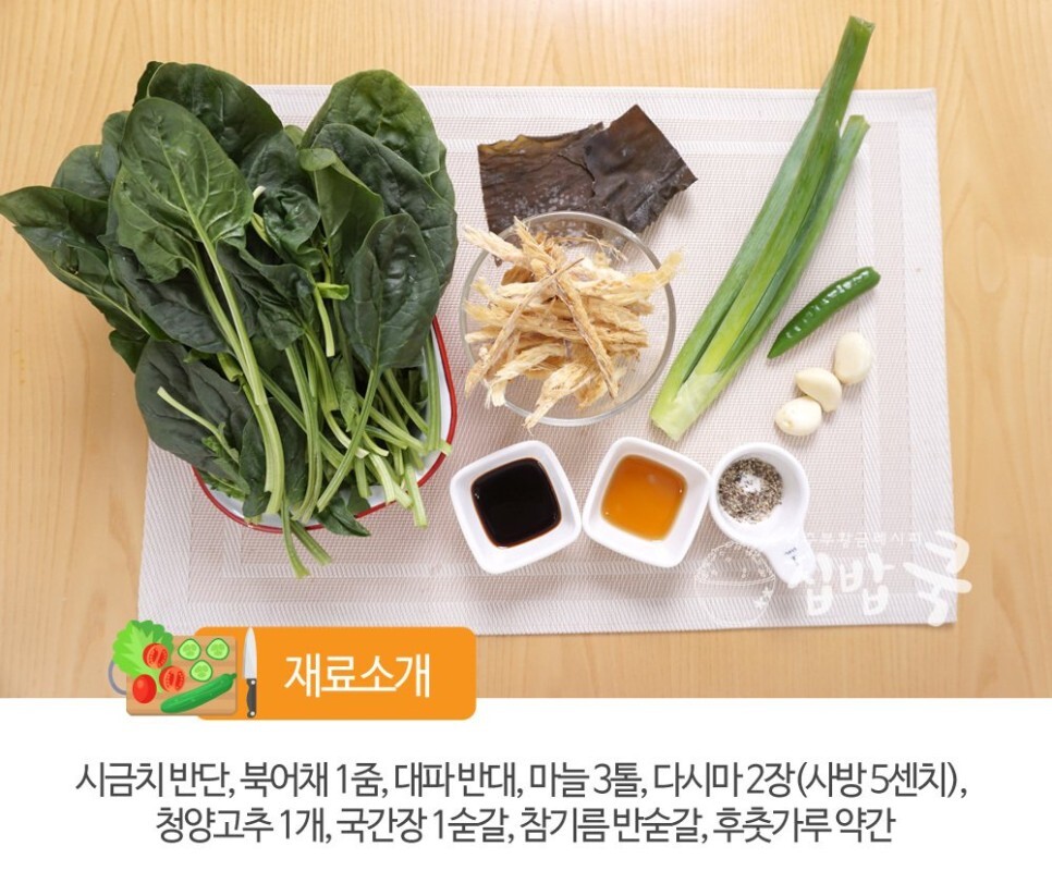 그럼 지금부터 시금치 북엇국 소개를 시작하겠습니다.