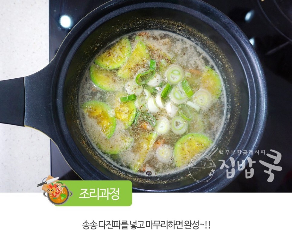 6. 마무리로 다진 파를 넣어주시면 애호박 들깨국 완성~!