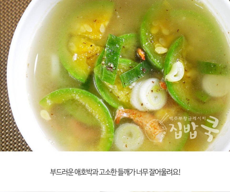 그럼 지금부터 애호박 들깨국 소개를 시작하겠습니다.