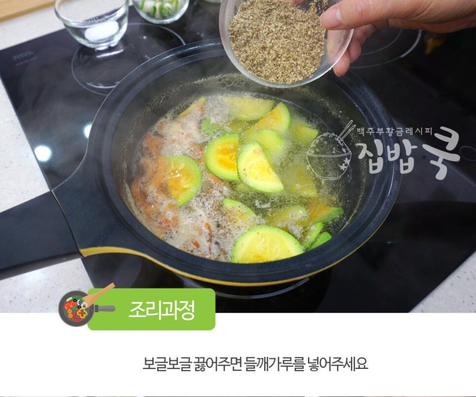 4. 보글보글 끓여주시다가 들깨가루를 취향에 따라 넣어주세요.