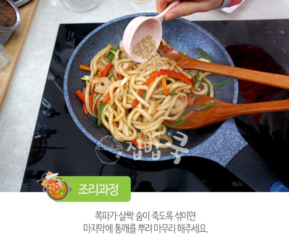 12. 마지막에 통깨를 뿌려주시면 해물 볶음 우동 (야끼우동) 완성!