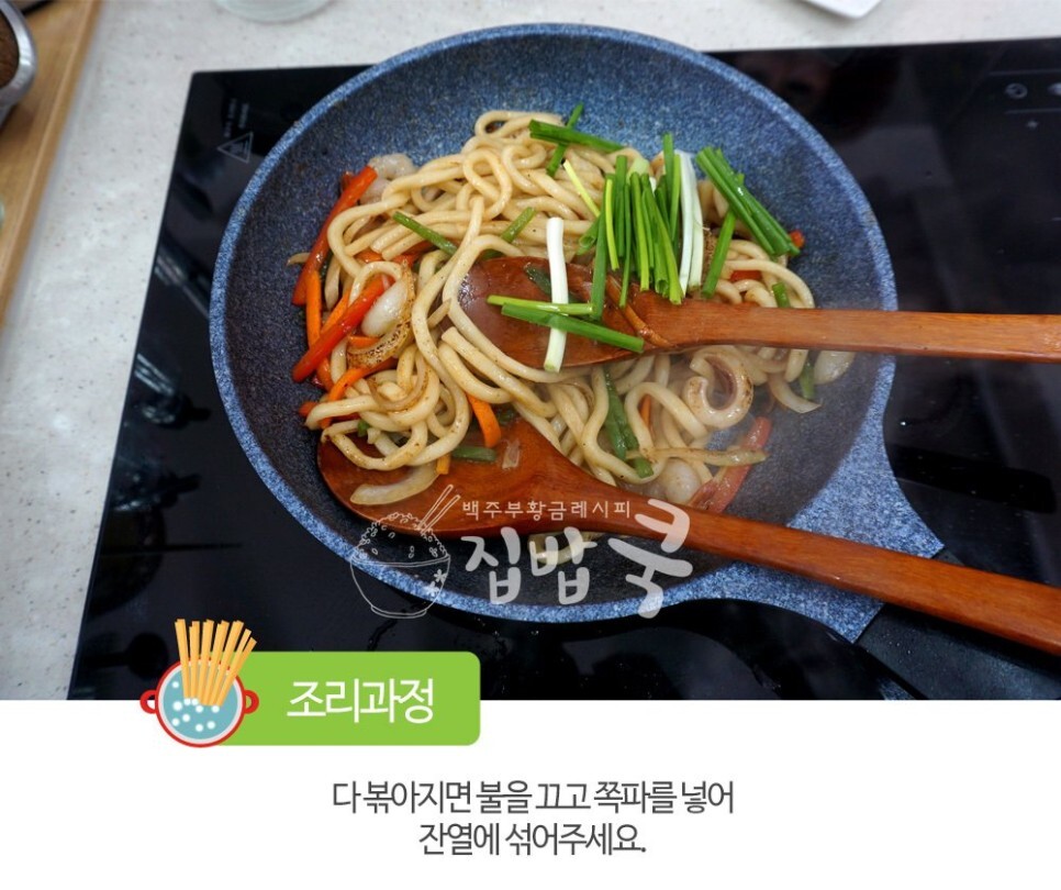 11. 다 볶아지면 불을 끄고 파를 넣고 잔열에 한번 더 재료들과 섞어주세요.