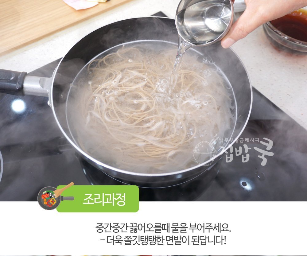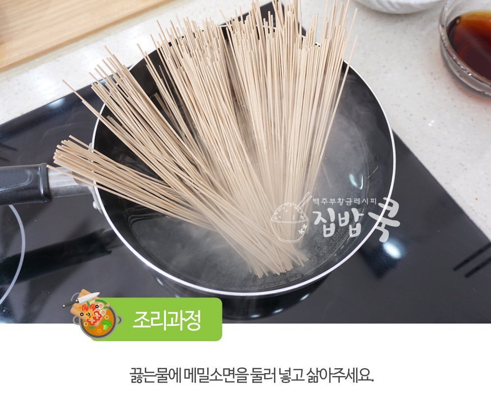 3. 끓는 물에 메밀 소면을 둘러 넣고 삶아주세요.