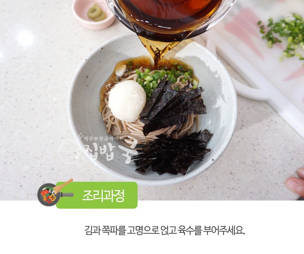 7. 김과 쪽파를 고명으로 얹고 육수를 부어주세요.