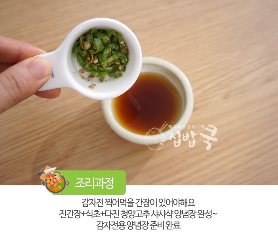 감자전 양념장 : 간장 + 식초 + 다진 청양고추