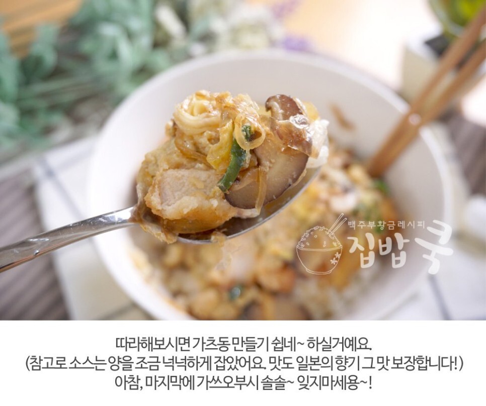자! 이렇게 돈까스 덮밥인 가츠동을 만들어 봤는데요 조리법을 따라해보시면 가츠동 만들기 너무 쉽네~하실 거예요 참고로 소스는 양을 조금 넉넉하게 잡았고 마지막에 가쓰오부시 잊지 마세요~! 다음에도 더 쉽고 간편한 레시피를 들고 오겠습니다.