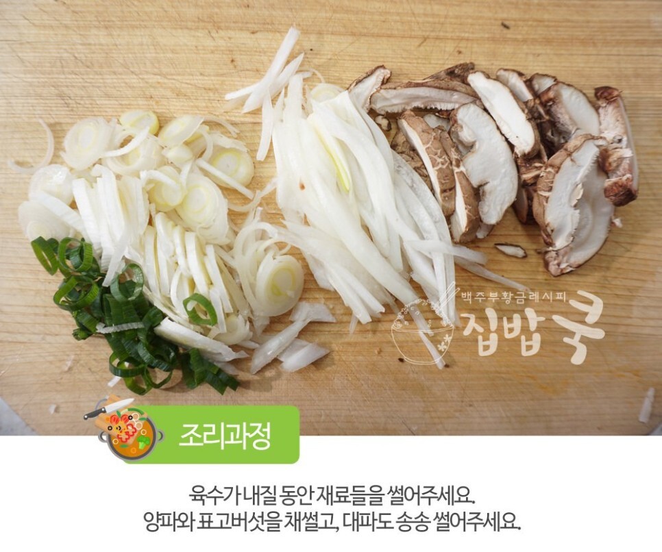 3. 육수가 잘 우려질 동안에 재료들을 썰어주세요.