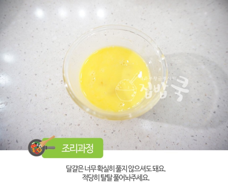 4. 계란은 너무 확 풀지 마시고 적당하게 풀어주세요.