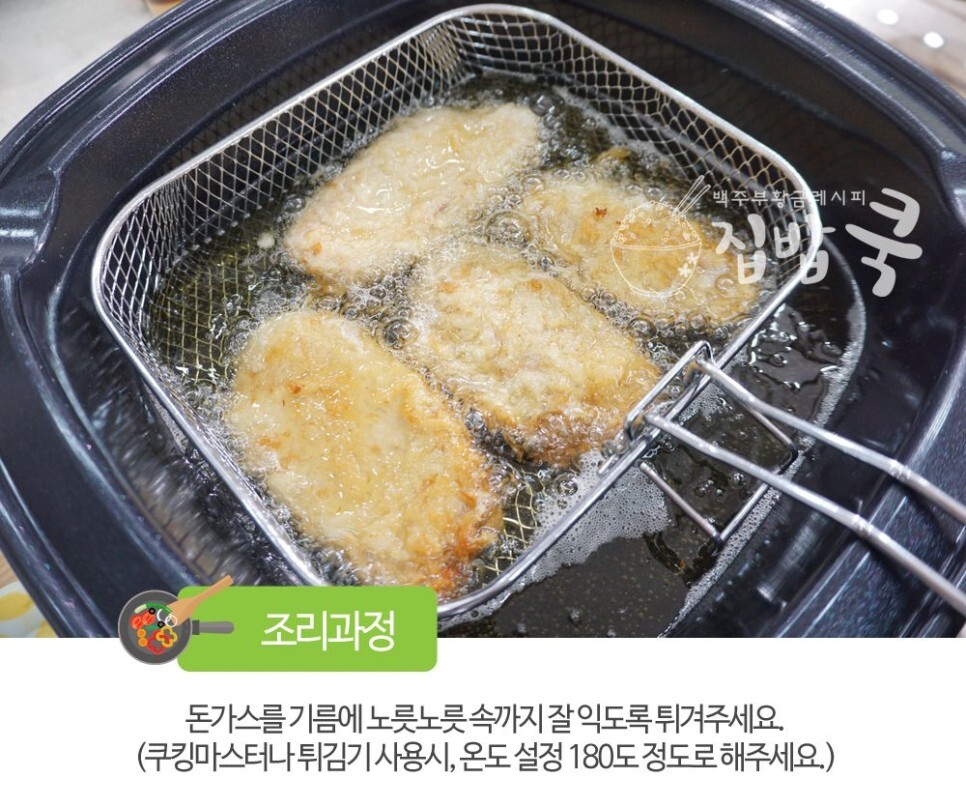 1. 돈까스를 기름에 튀겨주시거나 혹은 에어프라이어에 돌려주세요.