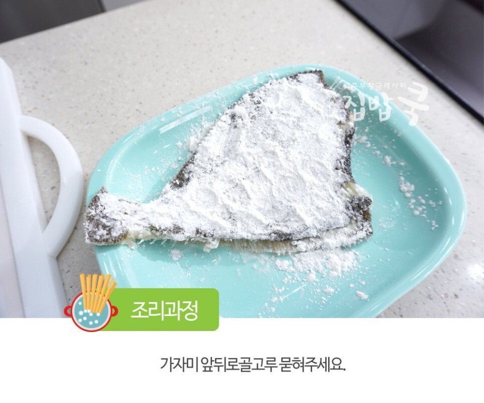 1. 감자 전분가루를 가자미 앞뒤로 골고루 묻혀주세요.