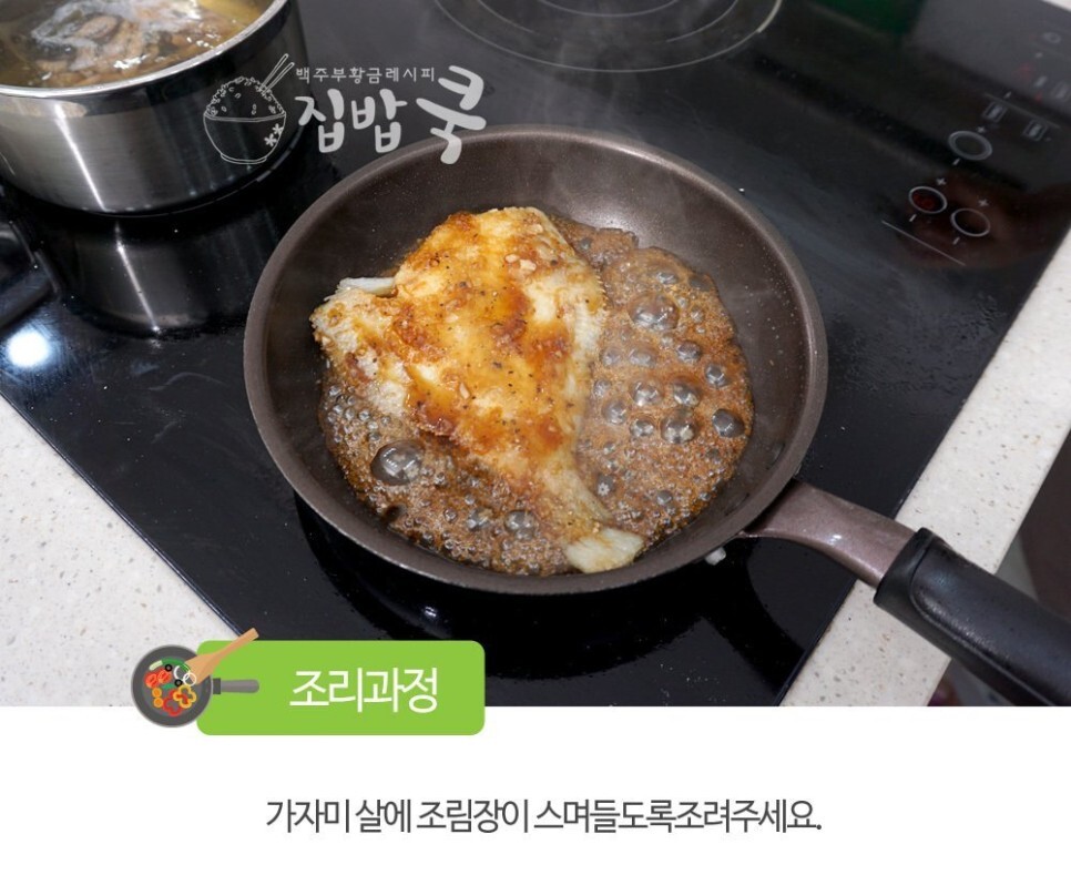 6. 가자미 살에 조림장이 스며들도록 조려주세요.