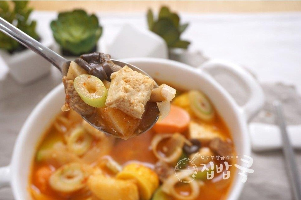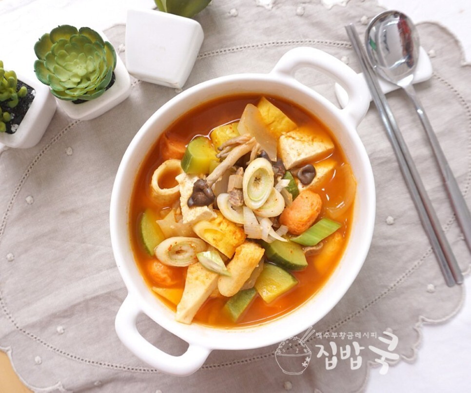 깊은 소고기 육수에 고추장을 풀어 두부와 어묵, 버섯과 야채들을 넉넉하게 넣고 고추장찌개와 두부찌개가 혼합된 느낌으로 뭉근하고 빡빡하게 끓였어요 육수는 꼭 소고기가 아니라도 돼지고기나 멸치 다시 육수를 사용하셔도 괜찮아요 얼큰하고~ 매콤하고~ 칼칼한 맛을 좋아하시는 분들이 딱!! 좋아하실 만한 찌개입니다. 그럼 지금부터 함께 보실까요~?ㅎ