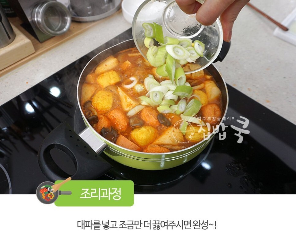 9. 야채들이 다 익으면 국간장으로 간을 하고 대파를 넣고 한번 살짝만 더 끓여주시면 어묵 두부찌개 완성~!