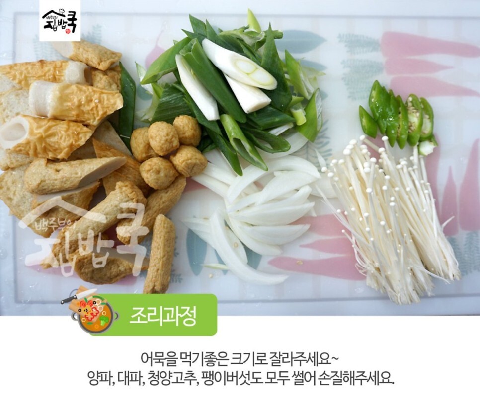3. 어묵 (오뎅)을 먹기 좋은 크기로 잘라주시고 그리고 야채들도 모두 썰어서 준비해 주세요.