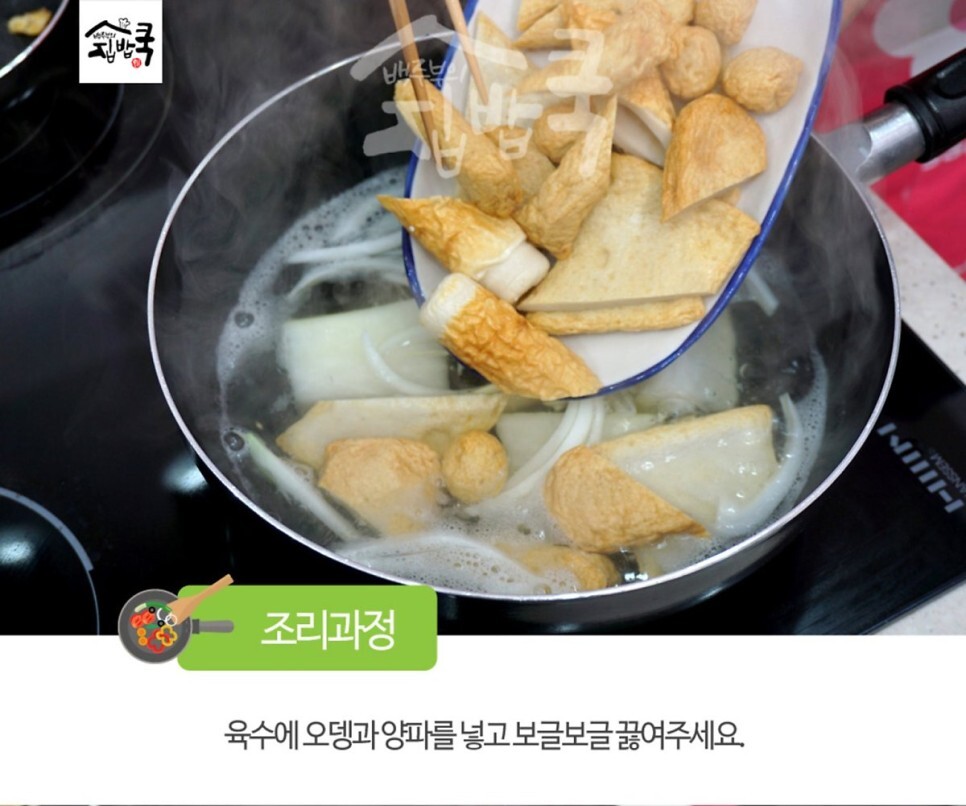 4. 육수에 어묵과 양파를 넣고 보글보글 끓여주세요.