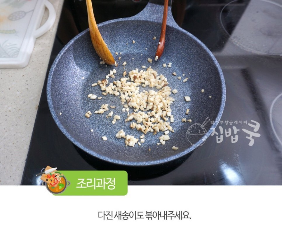 3. 그리고 다져둔 새송이버섯 몸통 부분도 볶아주세요.
