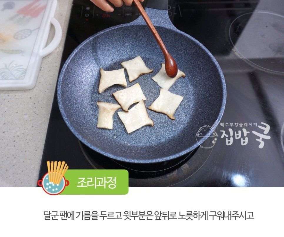 2. 달군 팬에 기름을 두르고 잘라두신 새송이버섯 머리 부분을 앞뒤로 노릇하게 구워주세요.