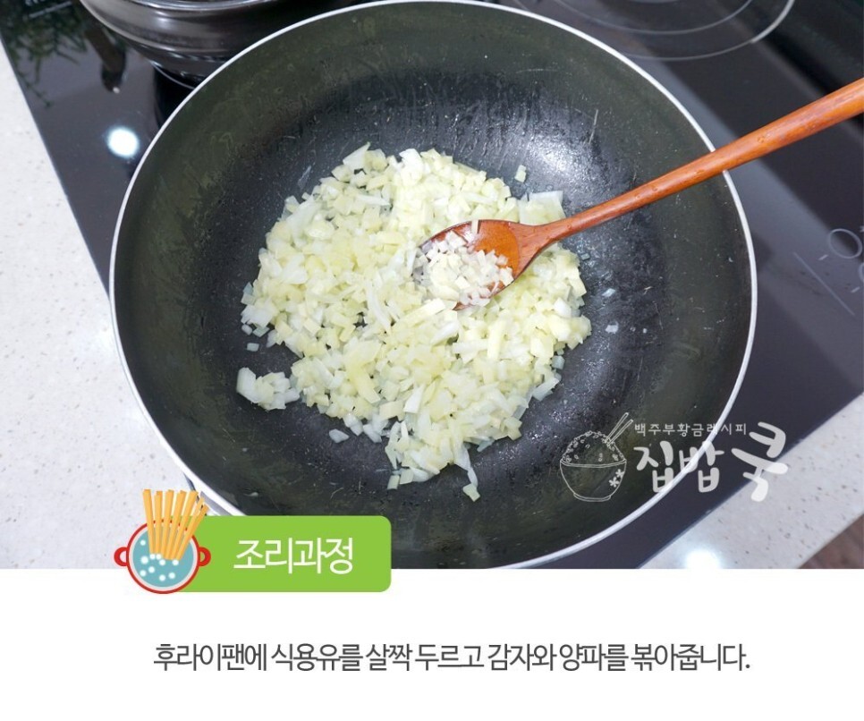 2. 프라이팬에 식용유를 살짝 두르고 감자와 양파를 볶아줍니다.