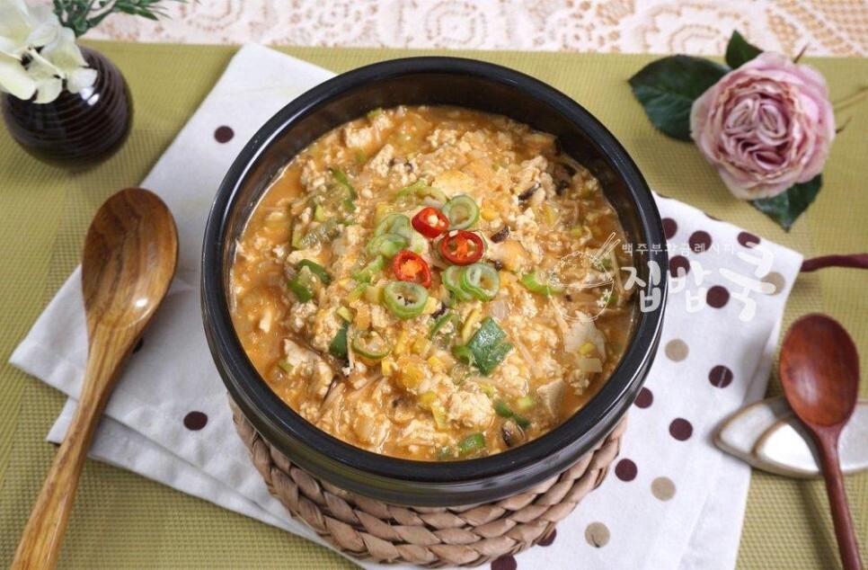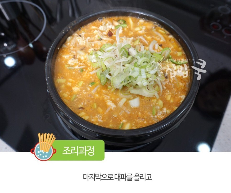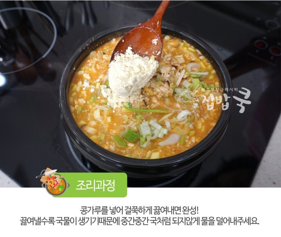9. 마지막으로 대파를 올리고, 콩가루를 넣고 걸쭉하게 끓여내면 완성~! (끓여낼수록 국물이 생기기 때문에 중간중간 국처럼 되지 않게 물을 덜어내주세요)
