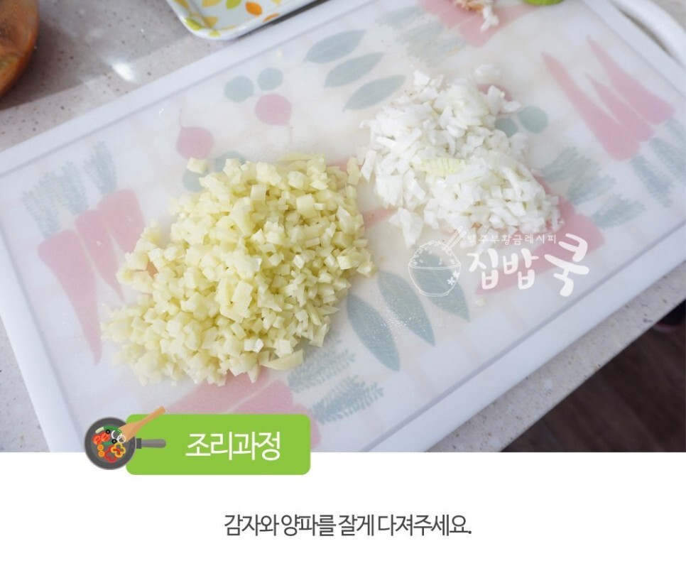 1. 먼저 감자와 양파를 잘게 다져주세요.