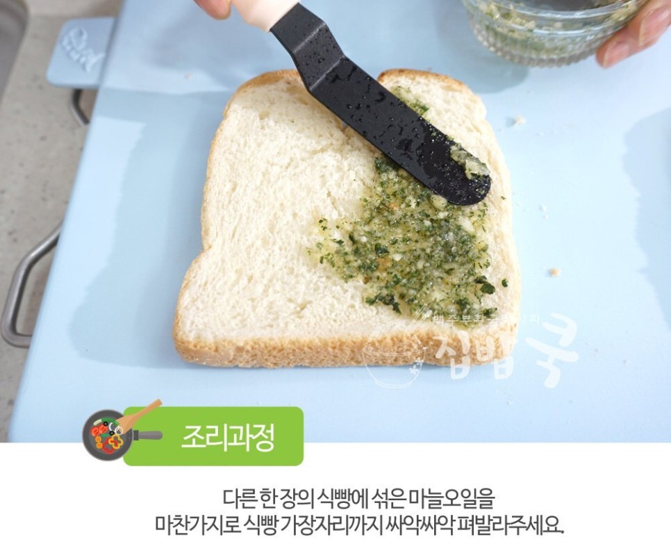 3. 다른 한 장의 식빵에 섞어주신 마늘 오일을 식빵에 골고루 발라주세요.